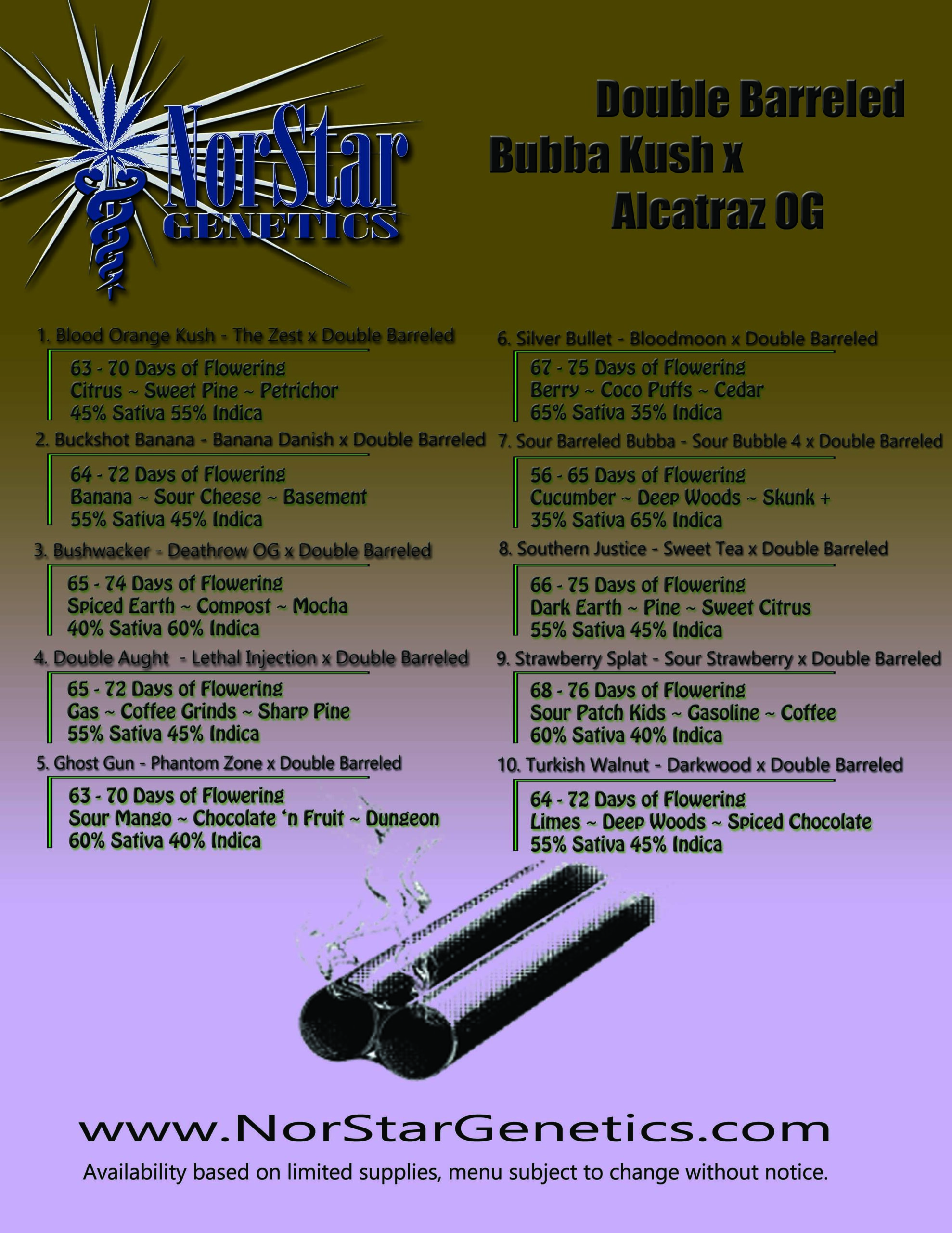 Double Barreled Menu 2025 Bubba Kush x Alcatraz OG